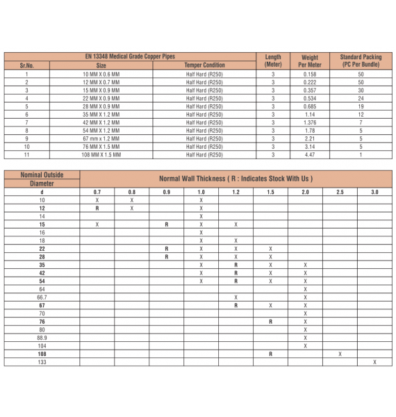 Thông Số Kỹ Thuật Ống Đồng Khí Y Tế Metalco