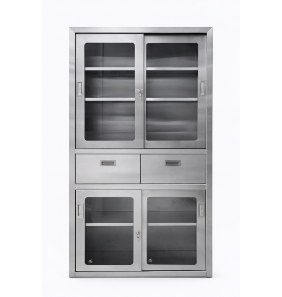 - Thiết kế thông minh: Nhiều ngăn chứa, cửa kính cường lực, tối ưu hóa lưu trữ dụng cụ y tế.